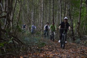 Đường đạp xe địa hình (hay còn gọi là đường xuyên rừng) nằm trên hòn đảo nhỏ Đầm Dơi. Đây là lối mòn xuyên rừng do người dân địa phương đi lại. Đặc điểm của đường rừng là đất gập ghềnh lồi lõm. Lúc bao quanh hồ, lúc chạy xuyên qua các tán cây.